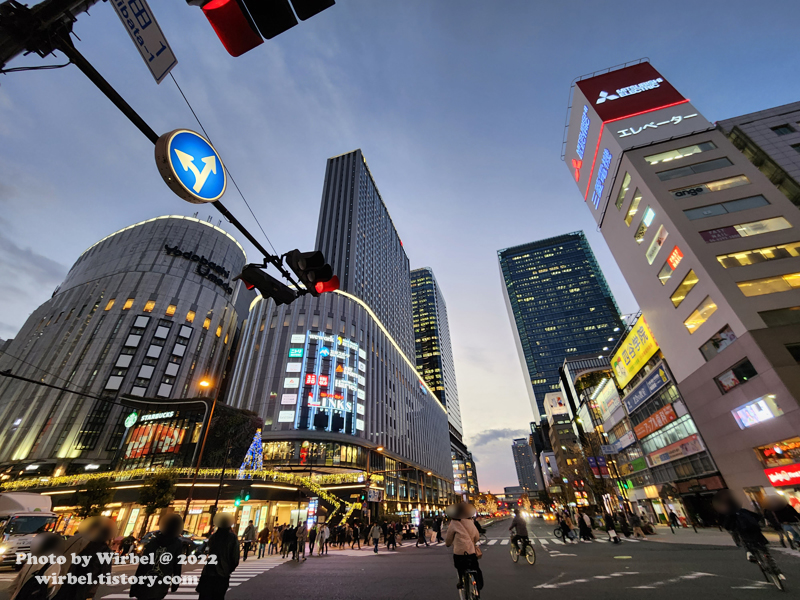 우메다 지역은 번화한 곳으로 기차와 전철이 만나는 곳입니다.