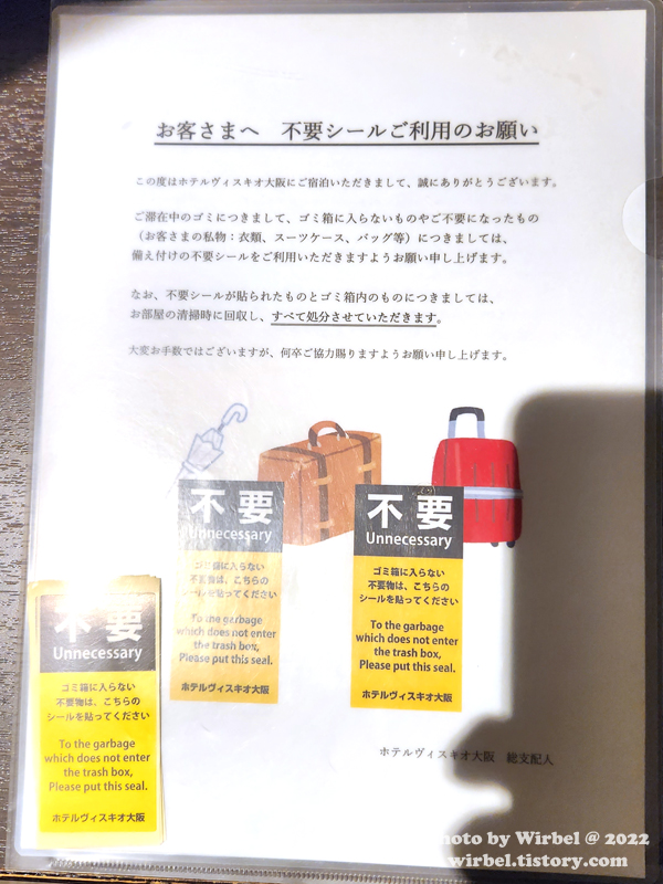 버릴 것은 쓰레기통에 넣지 않고 스티커를 붙여도 된다고 합니다.