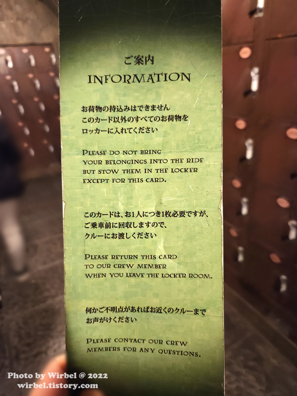 스페이스 판타지 더 라이드는 탑승하기 전에 락커에 짐을 보관해야 합니다.