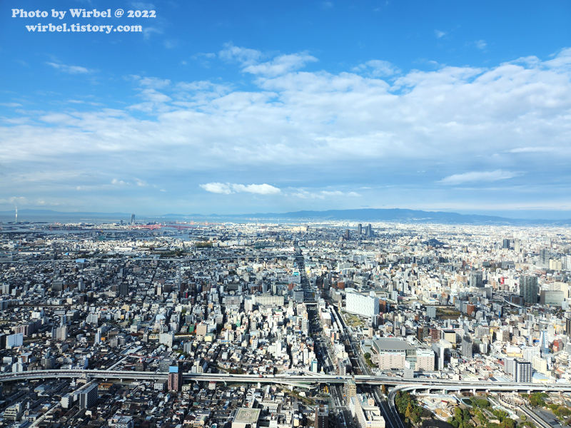 오사카시는 평지에 있고 주변에 산이 없어서 탁 트인 전망입니다.