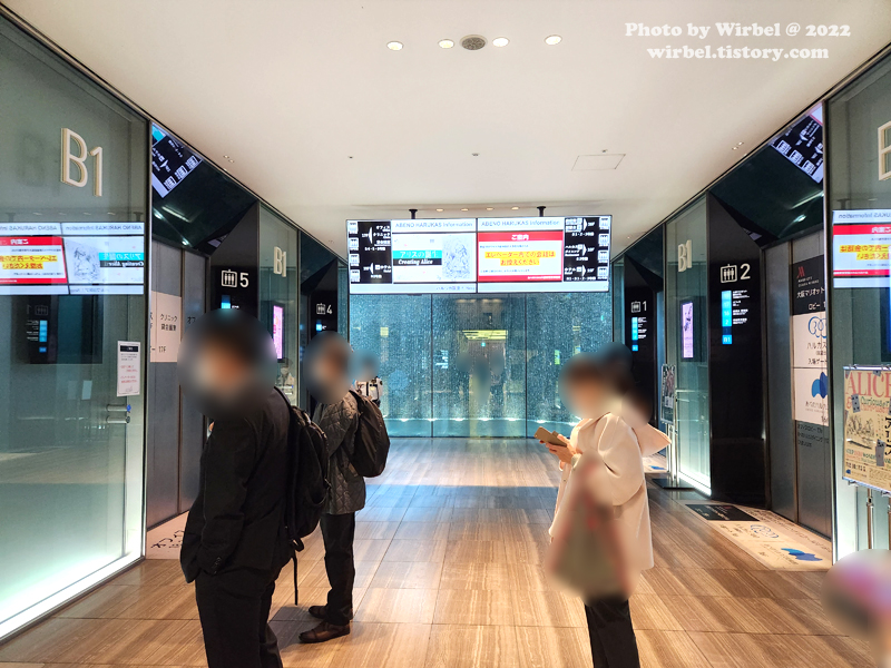 오른쪽이 하루카스 전망대 출입구로 가는 엘리베이터입니다.
