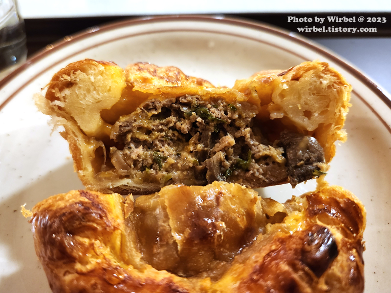 우리 입맛에 맞춰 갈비양념된 소고기와 체다치즈가 듬뿍 들어간 미트 파이라고 합니다.