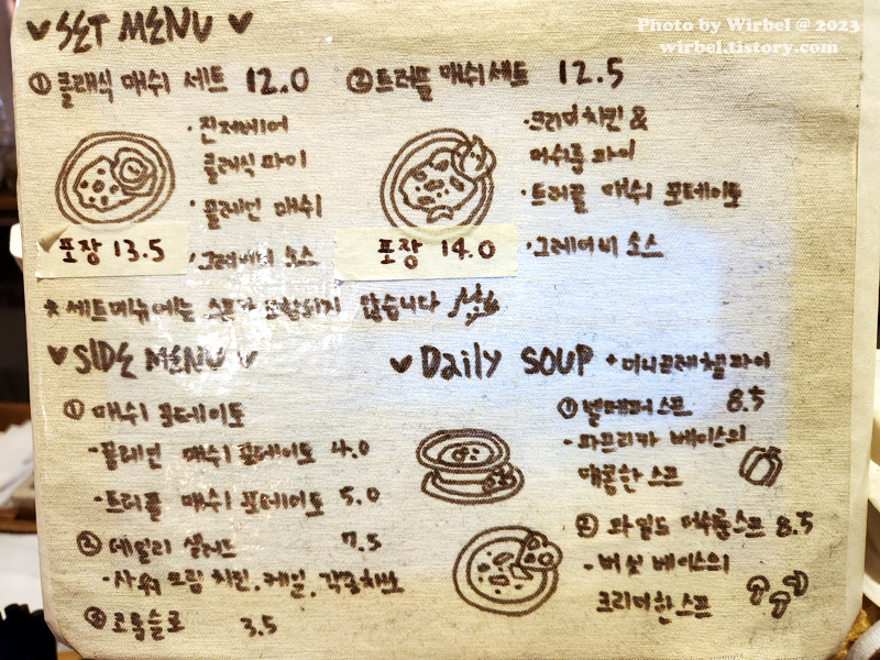 한줄평: 잠실 석촌호수에서 데이트하기 좋은 파이 가게! 방문 시기: 2023년 2월 이날 가격: 22,000원 시그니처 메뉴: 클래식미트파이 재방문의사: 웨이팅이 없을 때 |