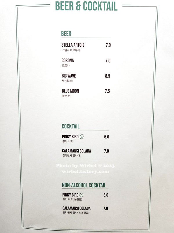 송리단길 리틀넥 음료 가격.