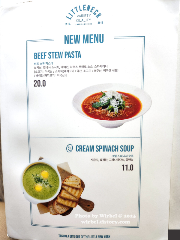 리틀넥 메뉴 가격.