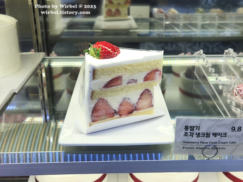 <통딸기 조각 생크림 케이크>, 가격: 9,800원.
