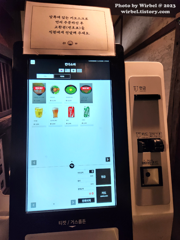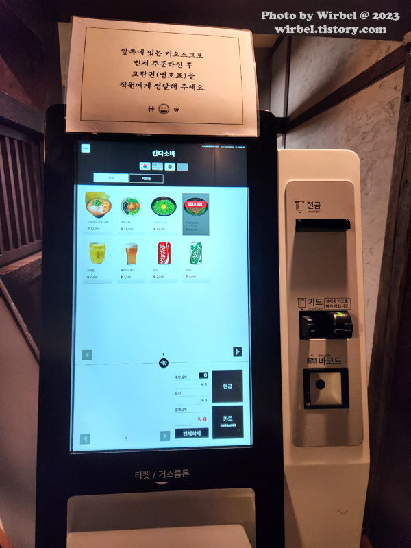 칸다소바 주문은 키오스크로 선불로 주문합니다.