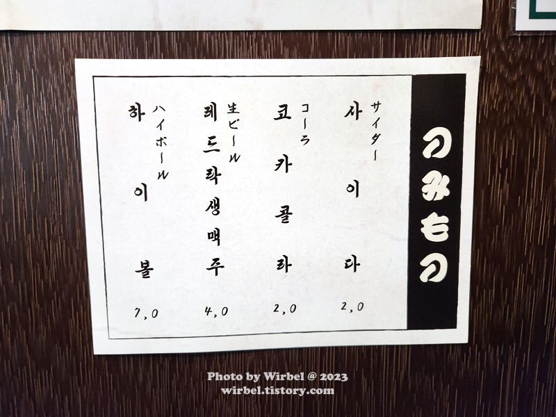 잠실 석촌호수 칸다소바 음료 주류 가격.