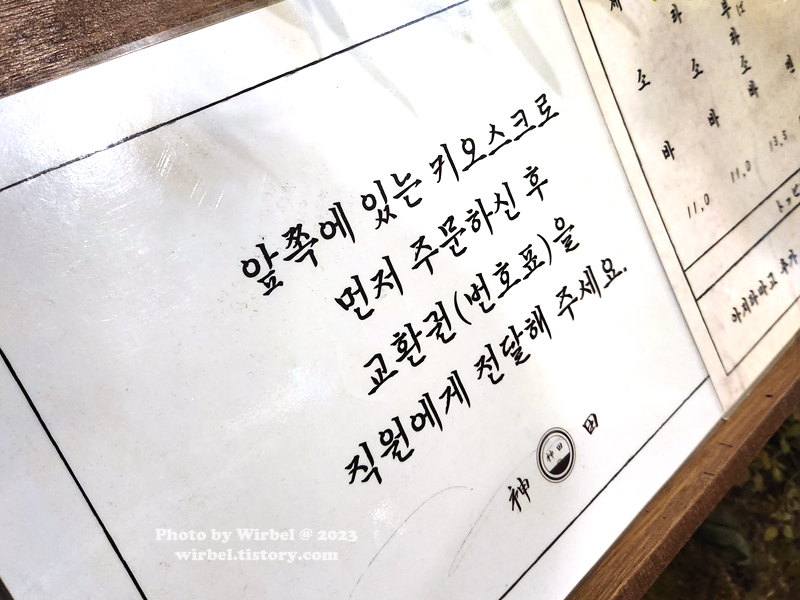 칸다소바 웨이팅 방법은 키오스크로 주문 결제하고 교환권을 직원에게 주고 기다리는 방식입니다.