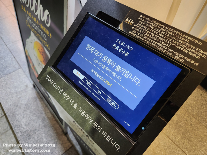 성수 오코노미야끼 핫쵸 대기 안내.