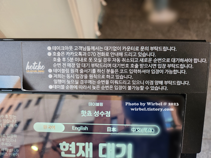 성수동 핫쵸 웨이팅시 대기 순서가 가까워 오면 대기하면 됩니다.