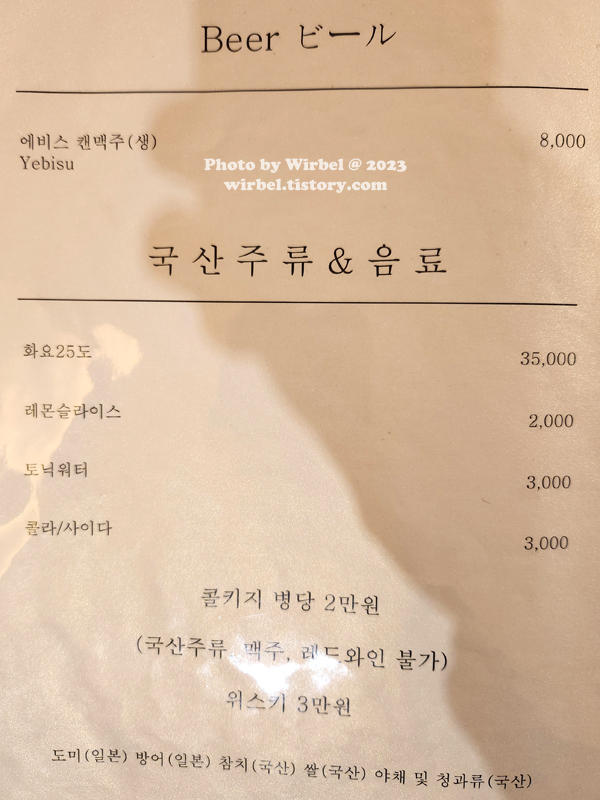 노원 스시 오마카세 스시다온 음료 주류 가격.