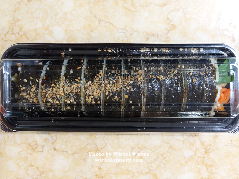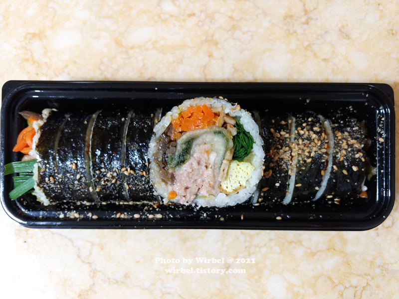 상큼한 묵은지가 있어서 깔끔한 스타일의 김밥입니다.