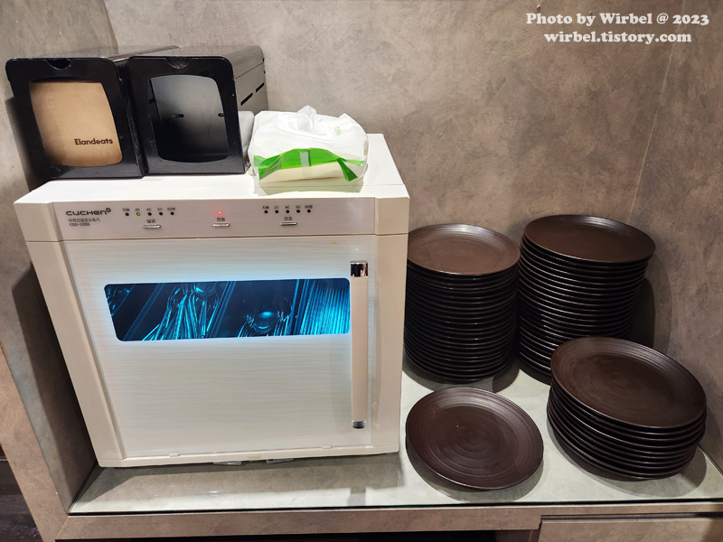 접시 치우는 것은 서빙로봇을 이용하거나 셀프 비대면 퇴식구를 이용하면 됩니다.