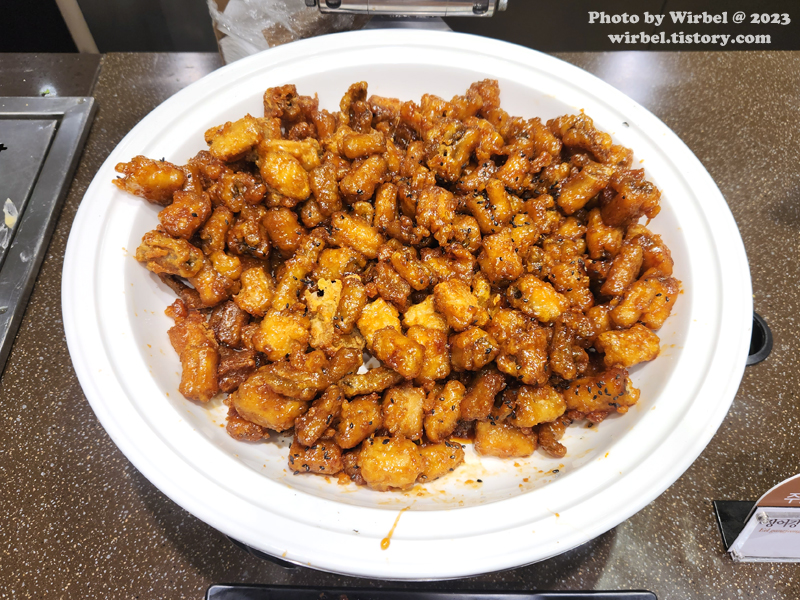장어강정, 마늘종치킨스테이크, 칼집양념구이, 닭강정, 표고버섯탕수.