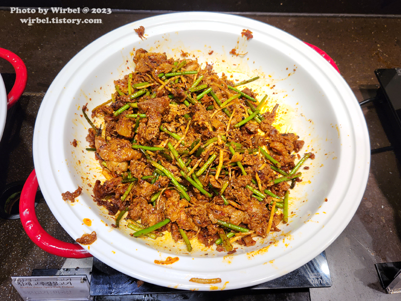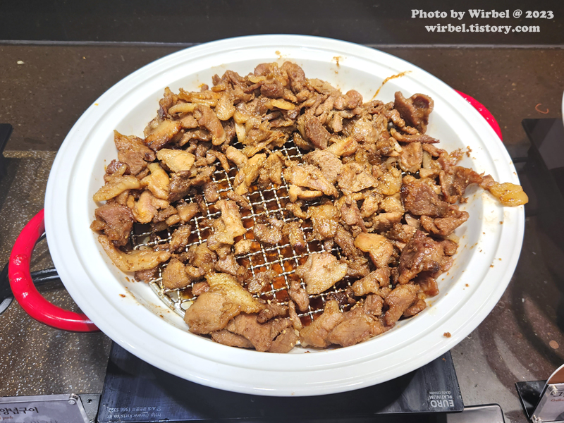 구이 코너는 소고기와 돼지고기 혼합이었습니다.