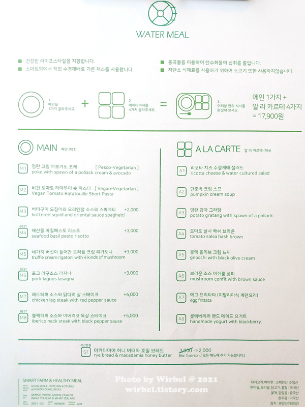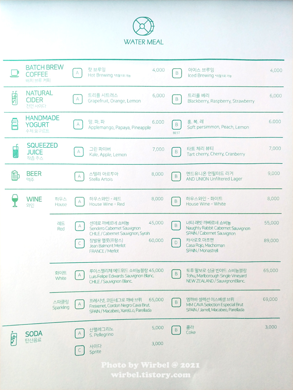 익선동 워터밀 메뉴 가격.