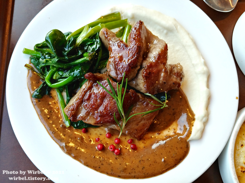 알라카르테는 건강한 맛으로 별다른 감흥은 없었지만 목살 스테이크는 메인 요리답게 맛있었습니다.