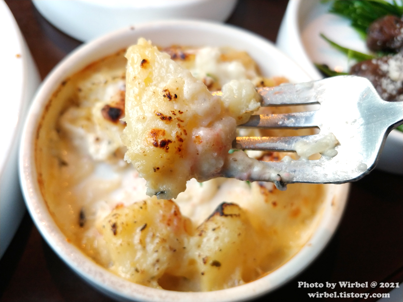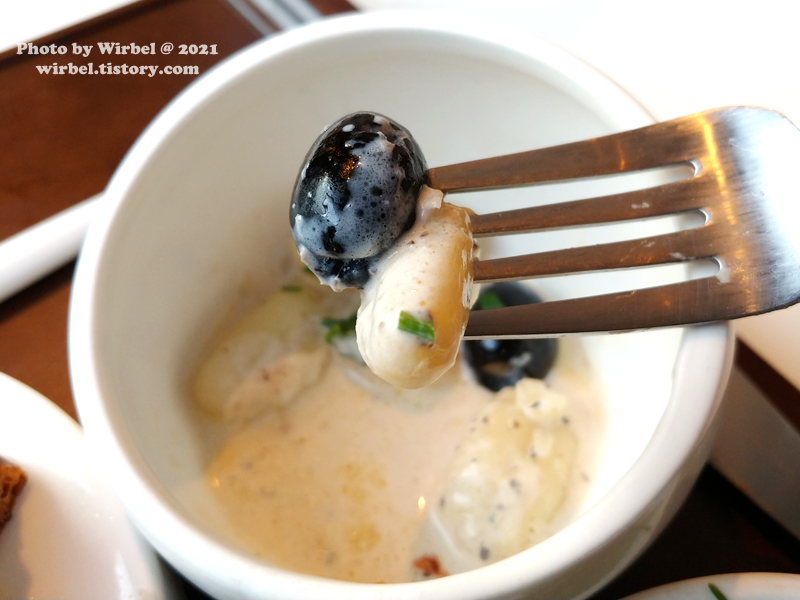 블랙 올리브가 있어서 건강한 맛이고 크림 소스가 묽은 편으로 뇨끼와 조화롭진 않아서 특별한 감흥은 없습니다.
