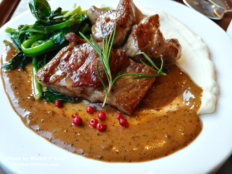 <블랙페퍼 소스와 이베리코 목살 스테이크 /