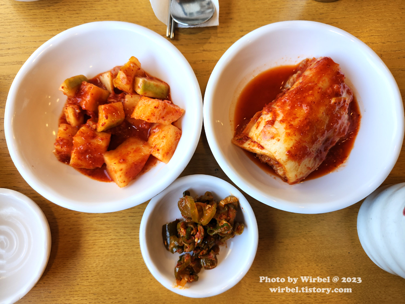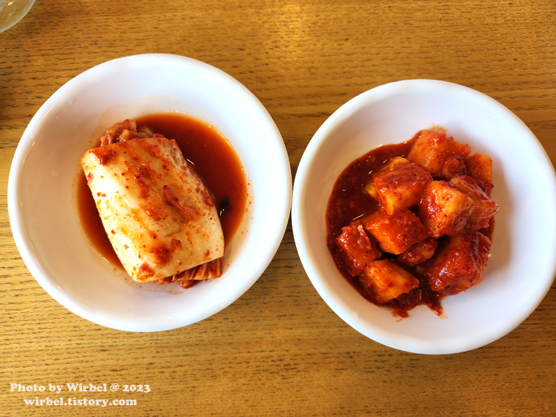 밑반찬 김치, 깍두기.
