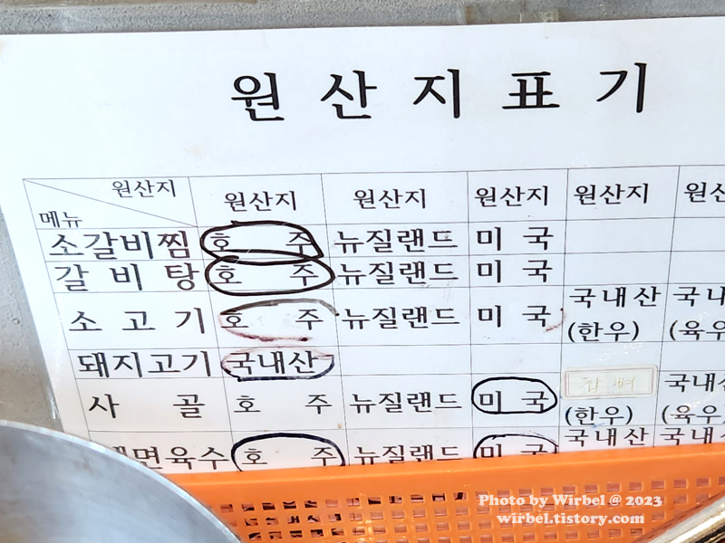 강동구 서초면옥 원산지 표시판.