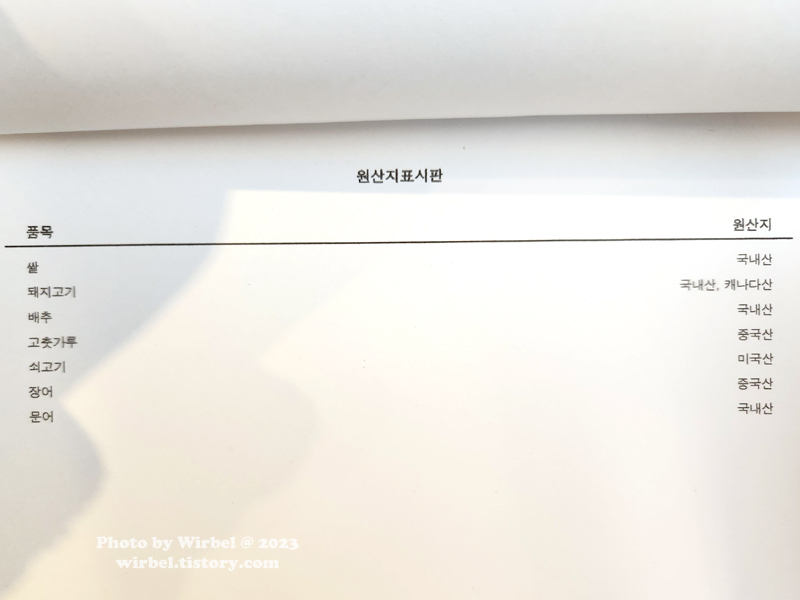 성동구 쵸리사경 원산지 표시판.