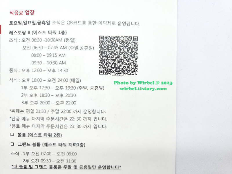 한줄평: 호캉스로 방문한 그랜드하얏트인천 조식 뷔페! 방문 시기: 2023년 5월 이날 가격: 조식 패키지로 이용 시그니처 메뉴: 뷔페 재방문의사: 호캉스로 묶는다면 이용 |