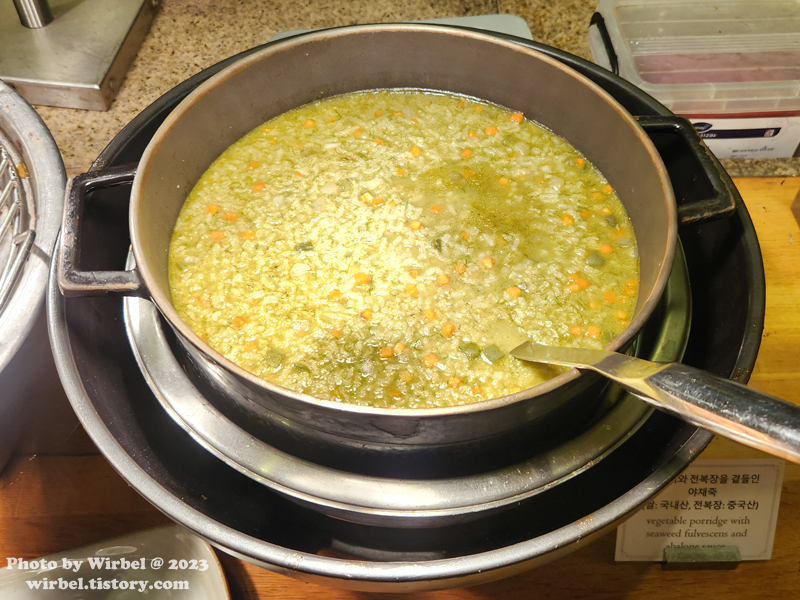 매생이와 전복장을 곁들인 야채죽.