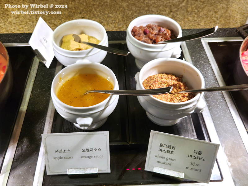 사과소스, 오렌지소스, 홀그레인머스타드, 디종머스타드.