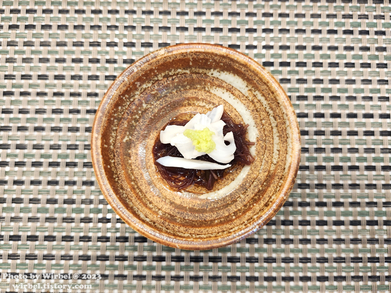 해초 꼬시래기에 한치가 곁들여져 있습니다.