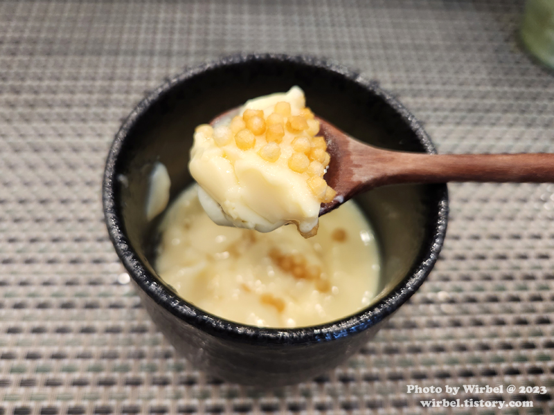 셔벗에 유자껍질이 들어가 있어서 씹는 식감이 괜찮습니다.