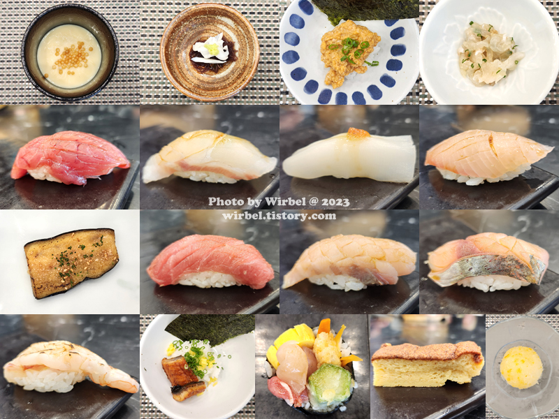 이날 먹은 스시다이이치 런치 스시 오마카세로 17가지가 나옵니다.