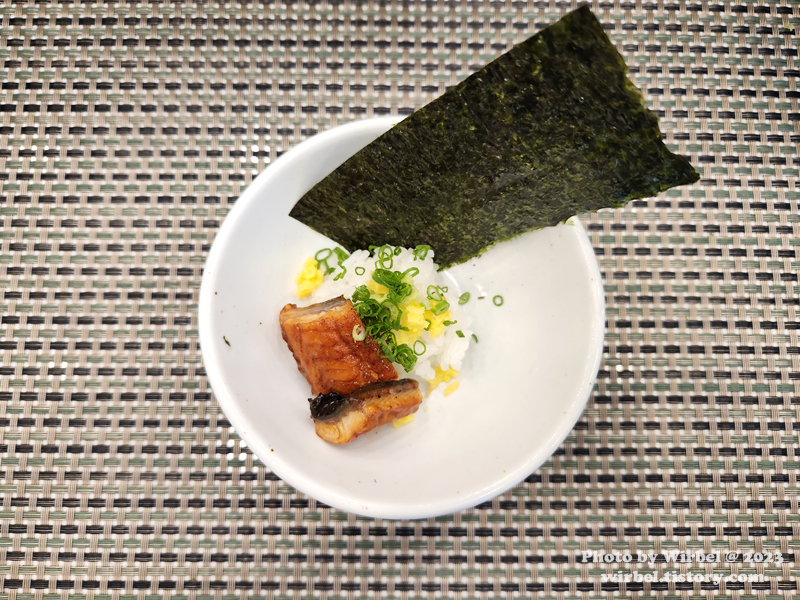 추천하는대로 장어 조각 하나는 김에 싸서 먹고 하나는 으깨서 밥에 비벼 먹어봅니다.