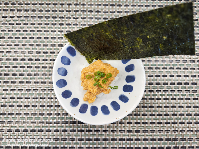 봄가을 간파치에 겨자와 고추로 만든 유즈코소가 곁들여집니다.