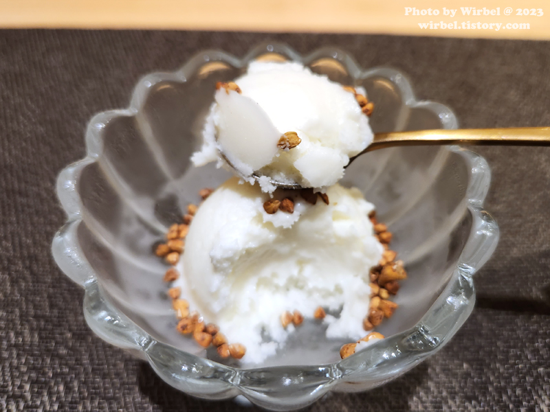 메밀튀김이 곁들여져 있는 쌀아이스크림이니 한식 느낌도 납니다.