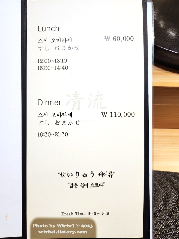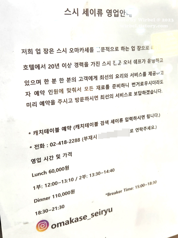 2023년 8월 세이류 런치 스시 오마카세 후기 https://wirbel.tistory.com/719