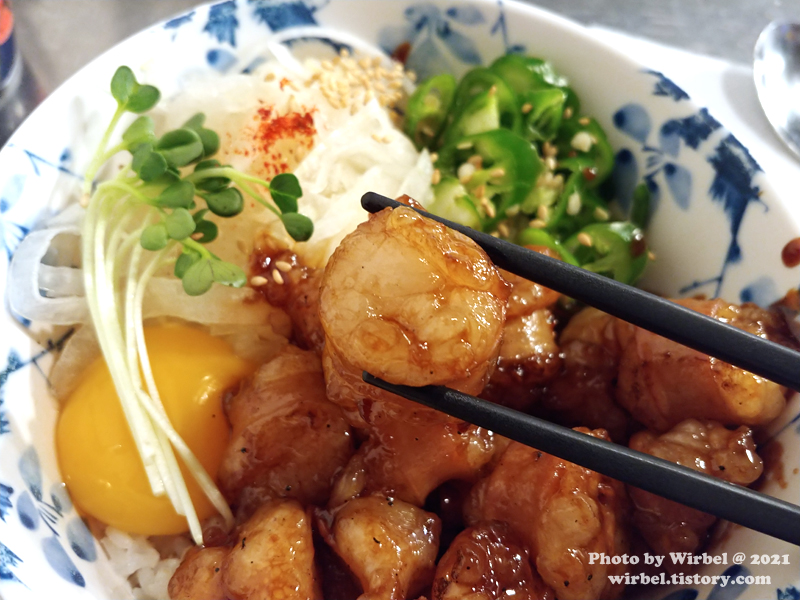 1인분으로 만날 수 있는 항정살 덮밥입니다.