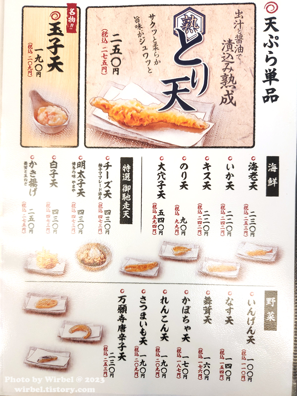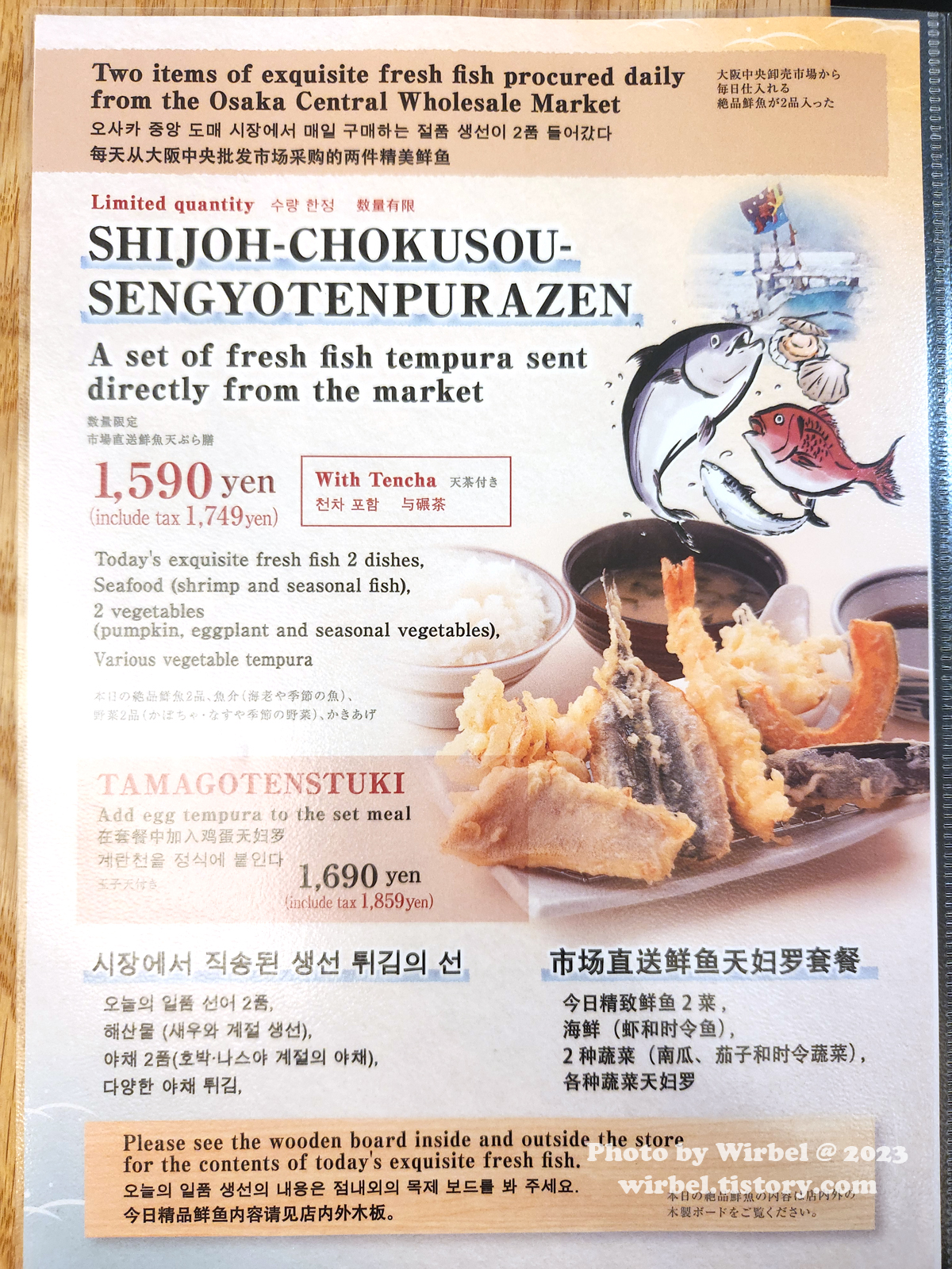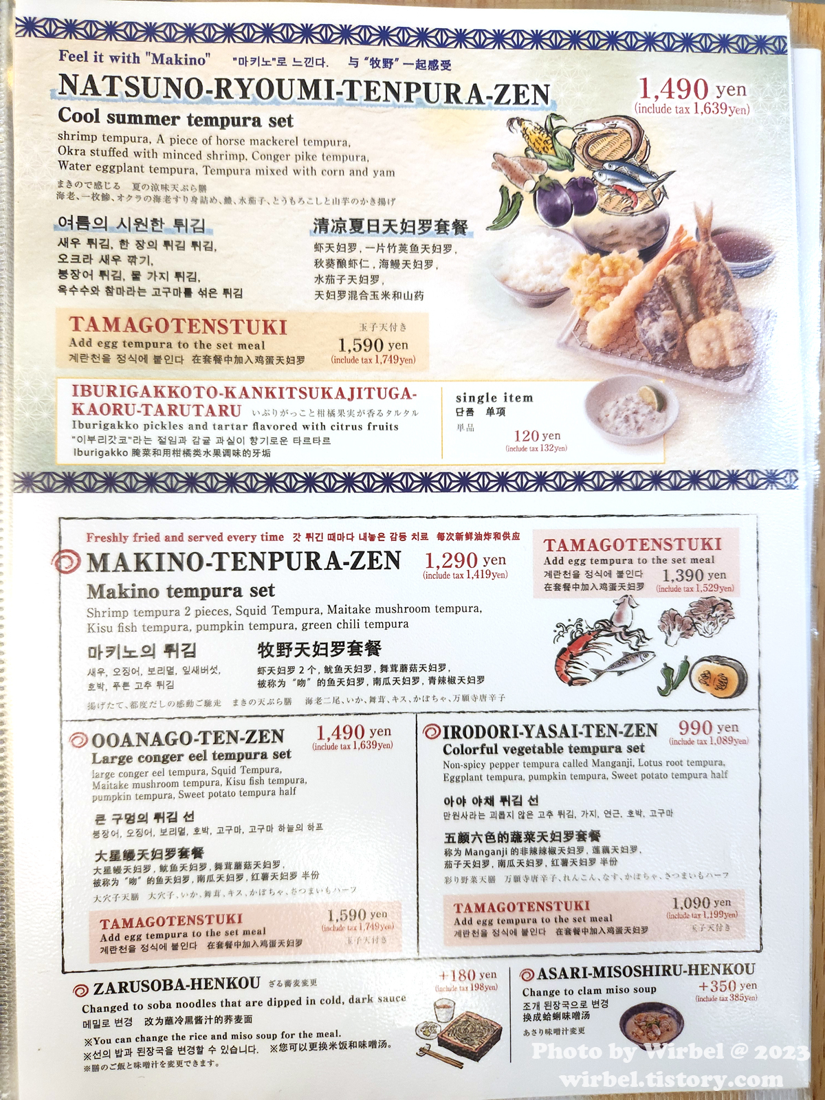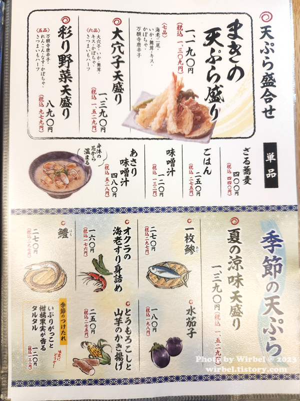 오사카 우메다 맛집 덴푸라 마키노 메뉴.