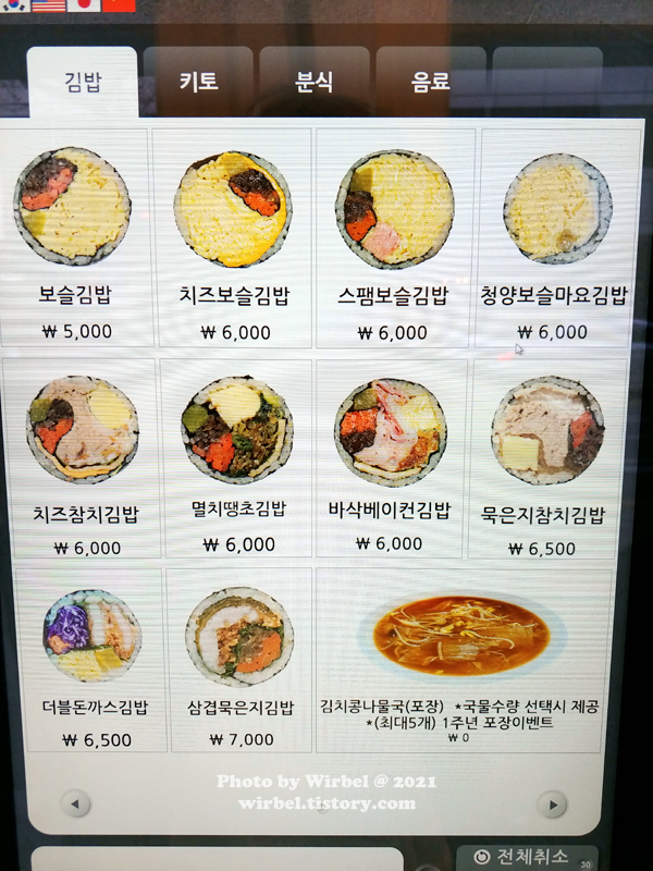 강남역 보슬보슬 김밥 가격.