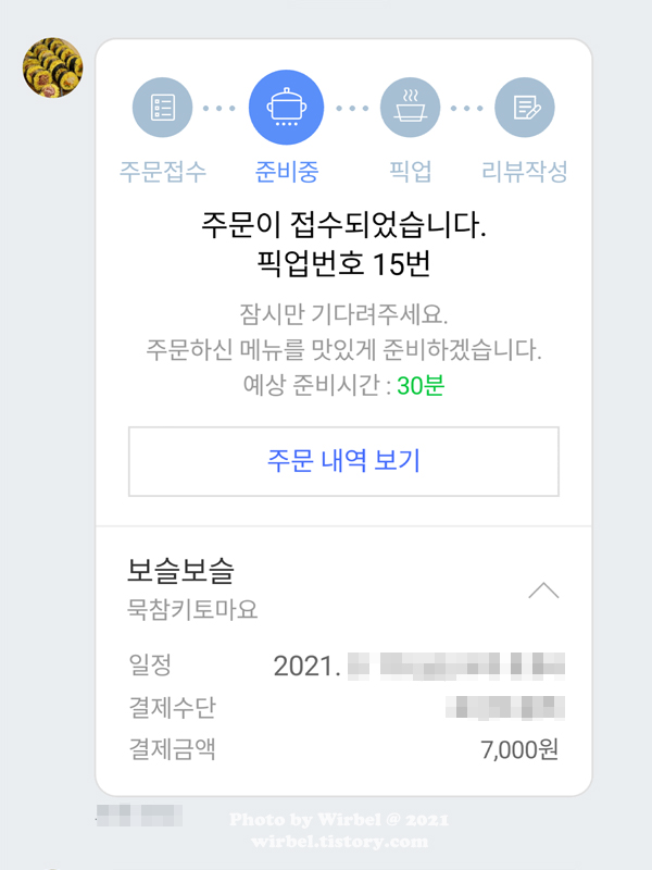 보슬보슬 주문할 때 오래 걸린다고 해서 방문 전에 미리 주문합니다.