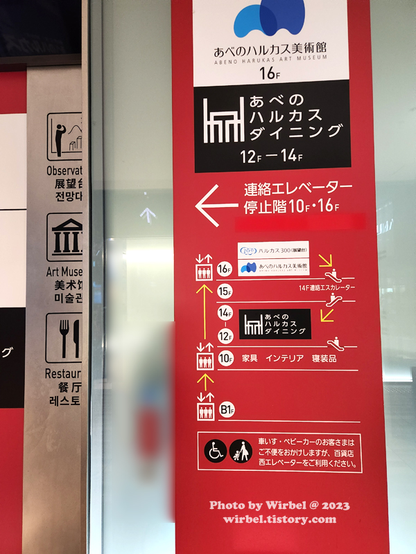 오사카 하루카스300 전망대 가려면 이 엘리베이터를 타고 16층으로 가야 합니다.