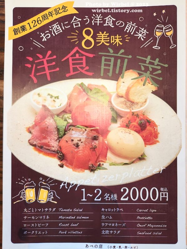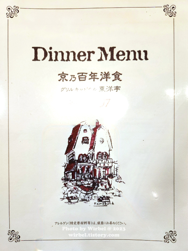 킨텐츠백화점 아베노하루카스 그릴캐피털 동양정 디너 메뉴.