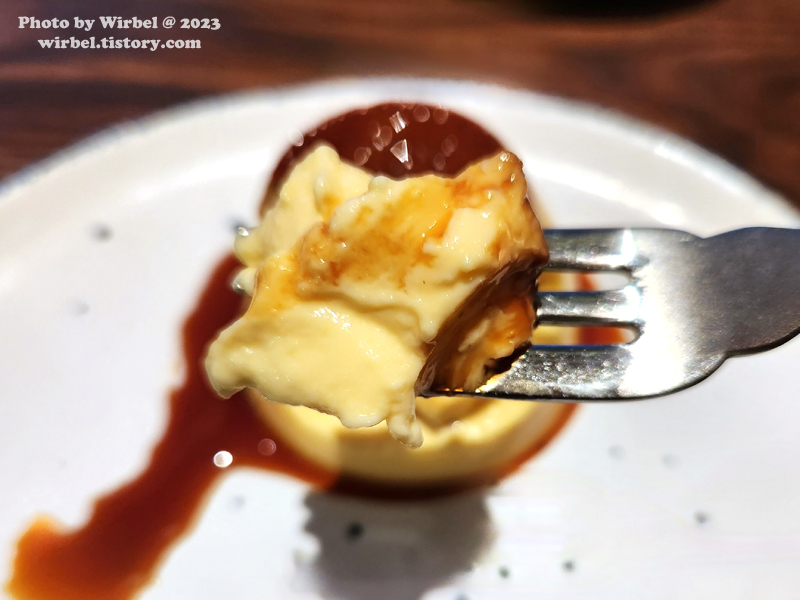캐러멜 시럽이 뿌려진 부드러운 푸딩입니다.