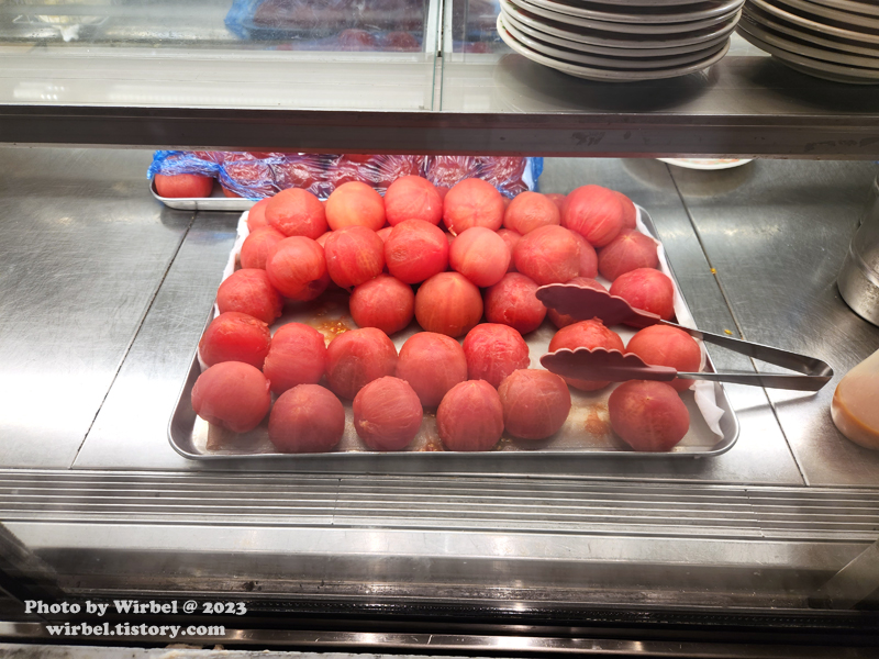 텐동 전문점에서 토마토 샐러드가 나오는 경우가 있긴 한데 이건 그 크기가 큽니다.