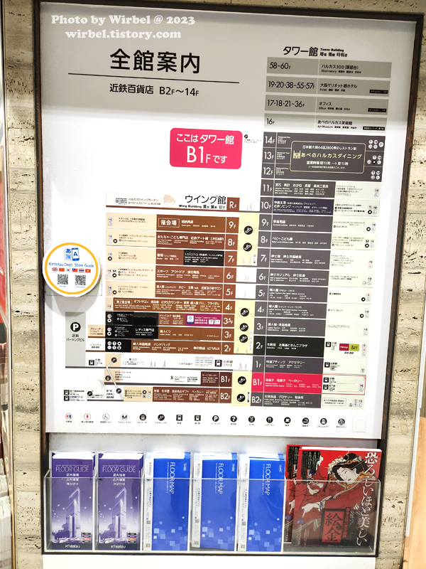 오사카 덴노지 킨텐츠백화점 아베노 하루카스 본점 층별 안내.