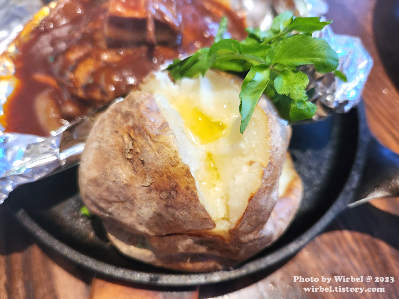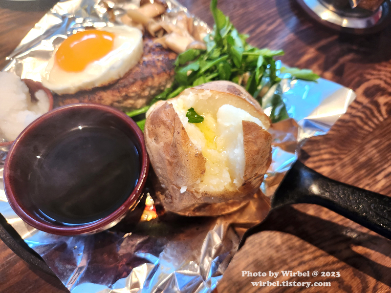 백년양식 함박스테이크 사이드로 구운 감자가 나옵니다.
