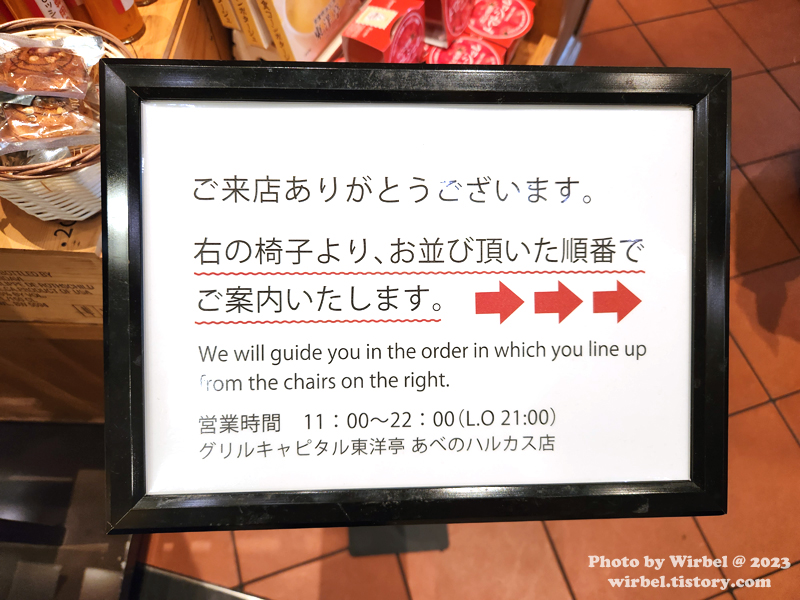 킨텐츠백화점 아베노하루카스 동양정 웨이팅 방식은 줄 서서 기다리는 방식입니다.