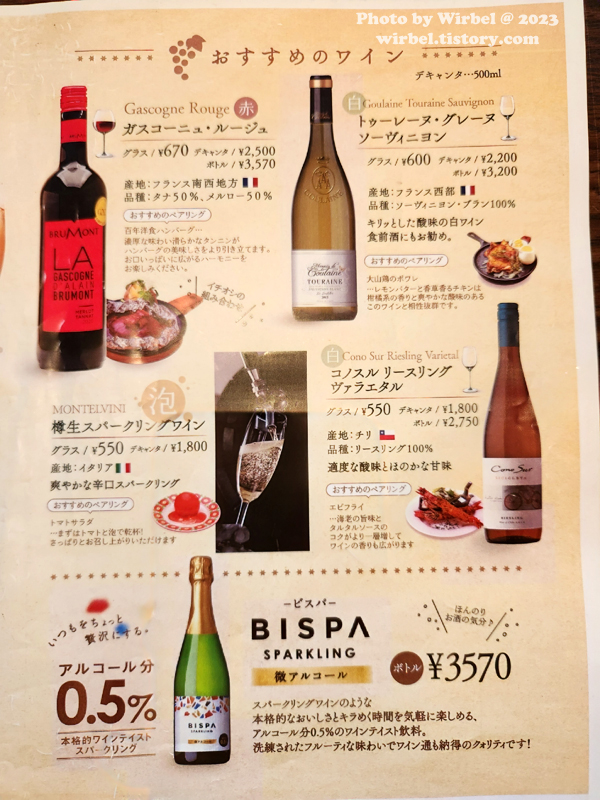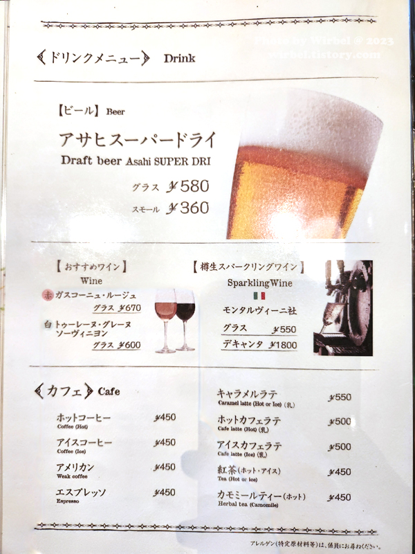 아베노하루카스 맛집 동양정 주류 음료 가격.