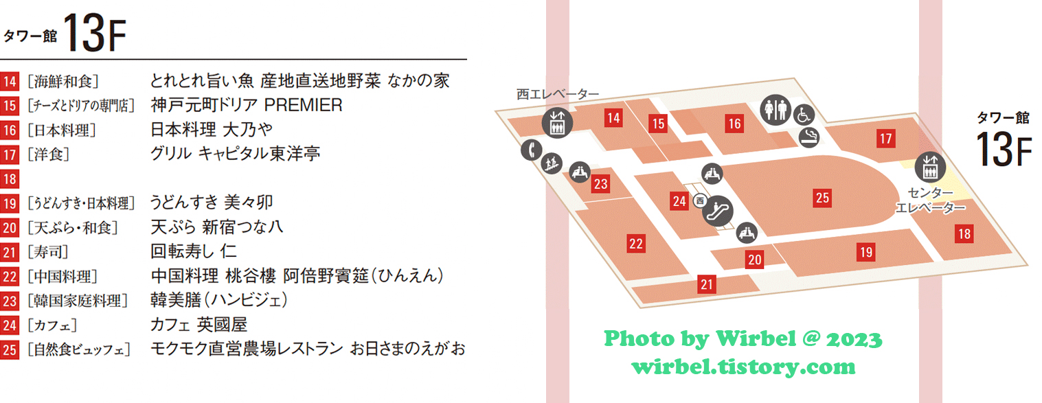 오사카 맛집 아베노 하루카스 킨텐츠백화점 13층 식당가 안내.